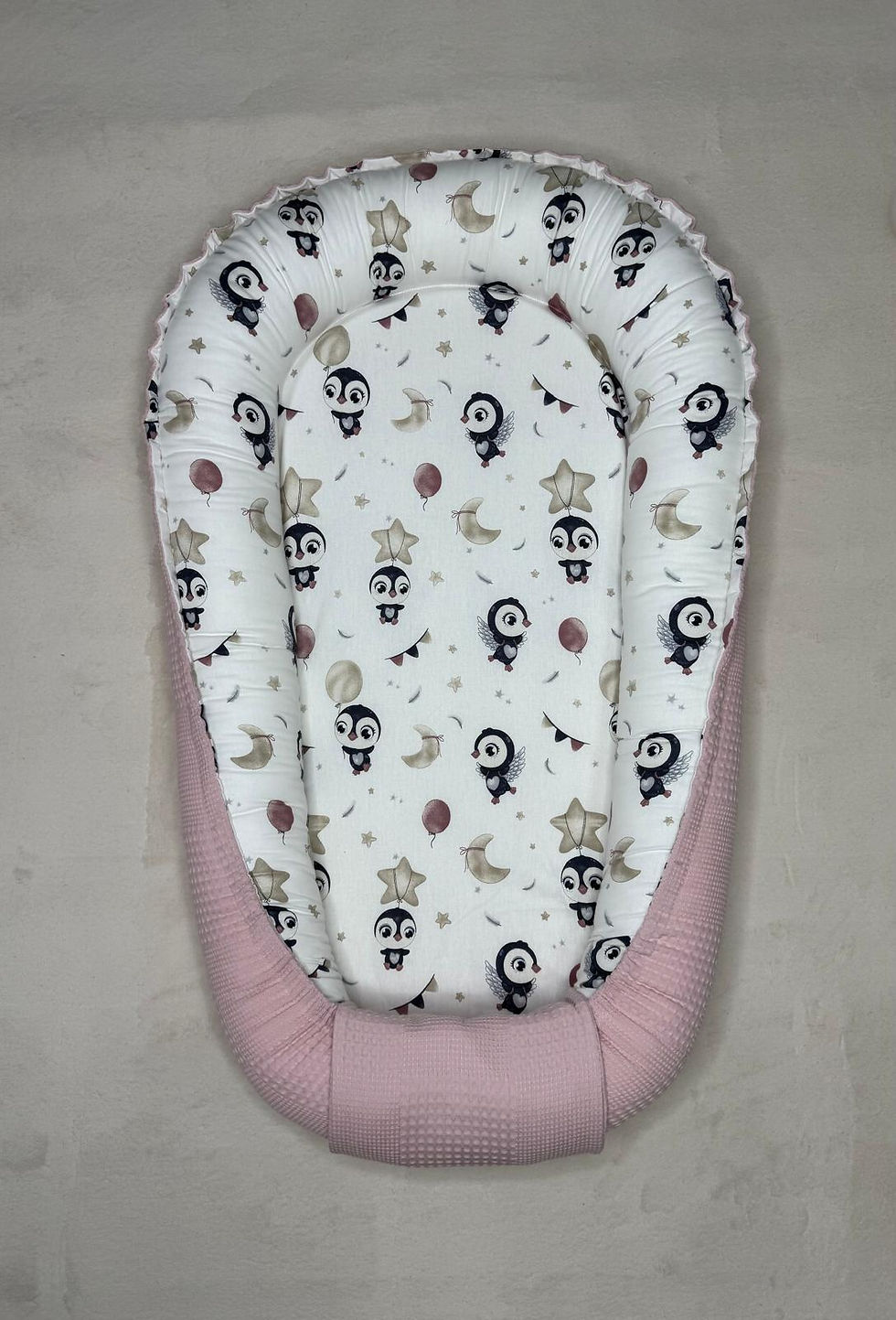 בייבי נסט - פינגווינים בשילוב בד פיקה ורוד עתיק